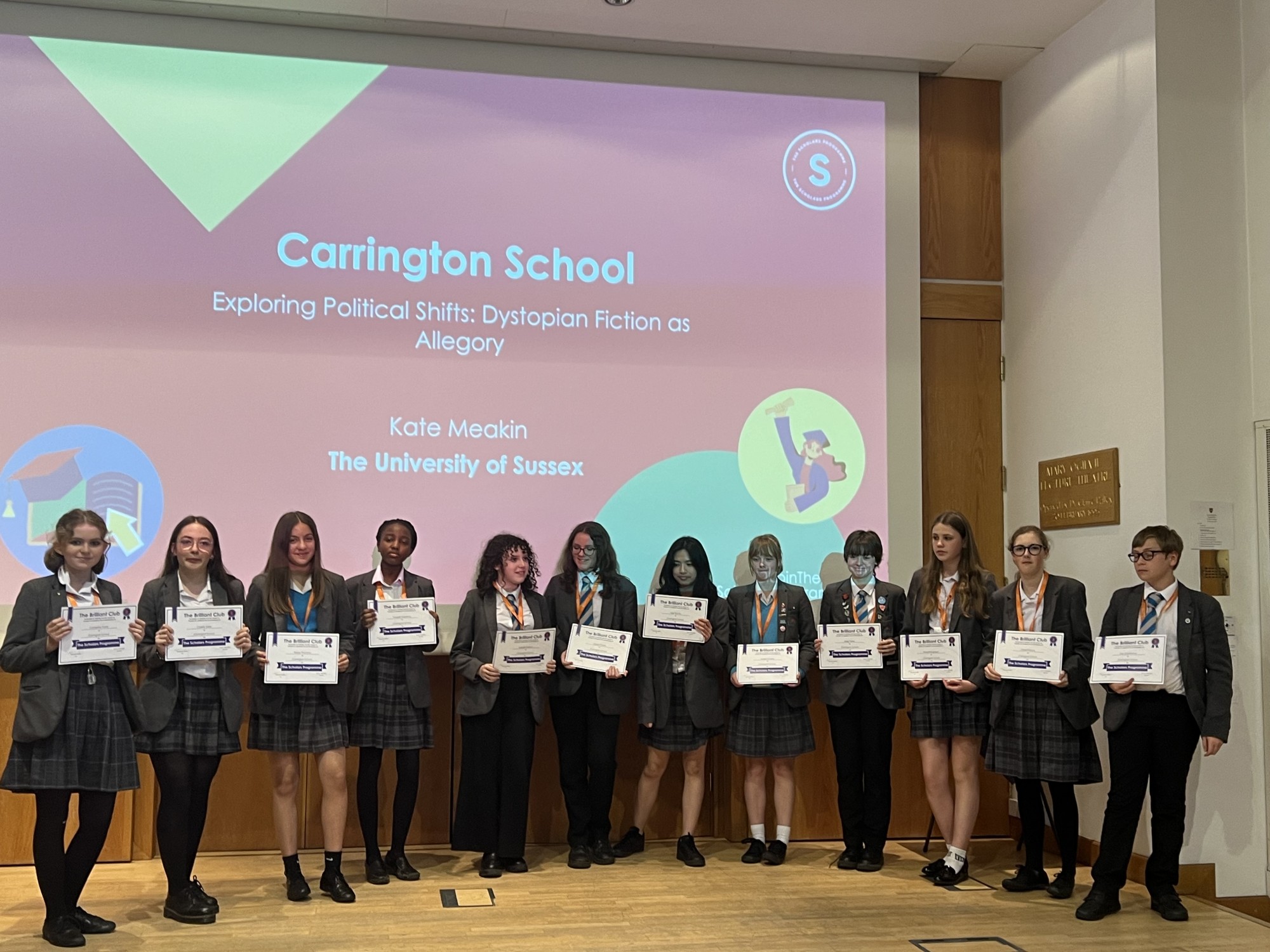 This term we joined up with The Brilliant Club to give a group of 12 Year 9 students the chance to work with a PhD tutor from the University of Sussex. They had five tutorial sessions before producing a 2000 word essay on the topic of “Exploring Political Shifts: Dystopian Fiction as Allegory”. The programme gave students the opportunity to stretch and challenge themselves, as well as the chance to experience university style learning.