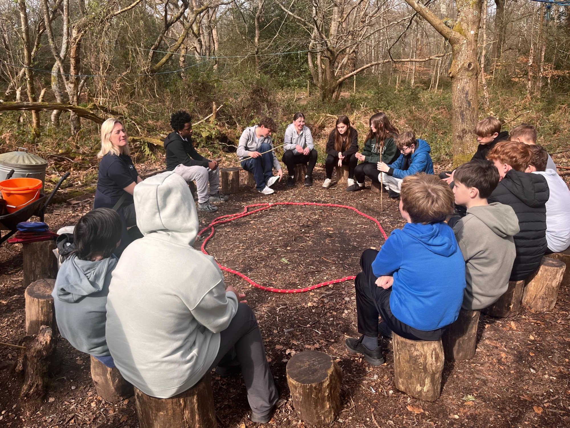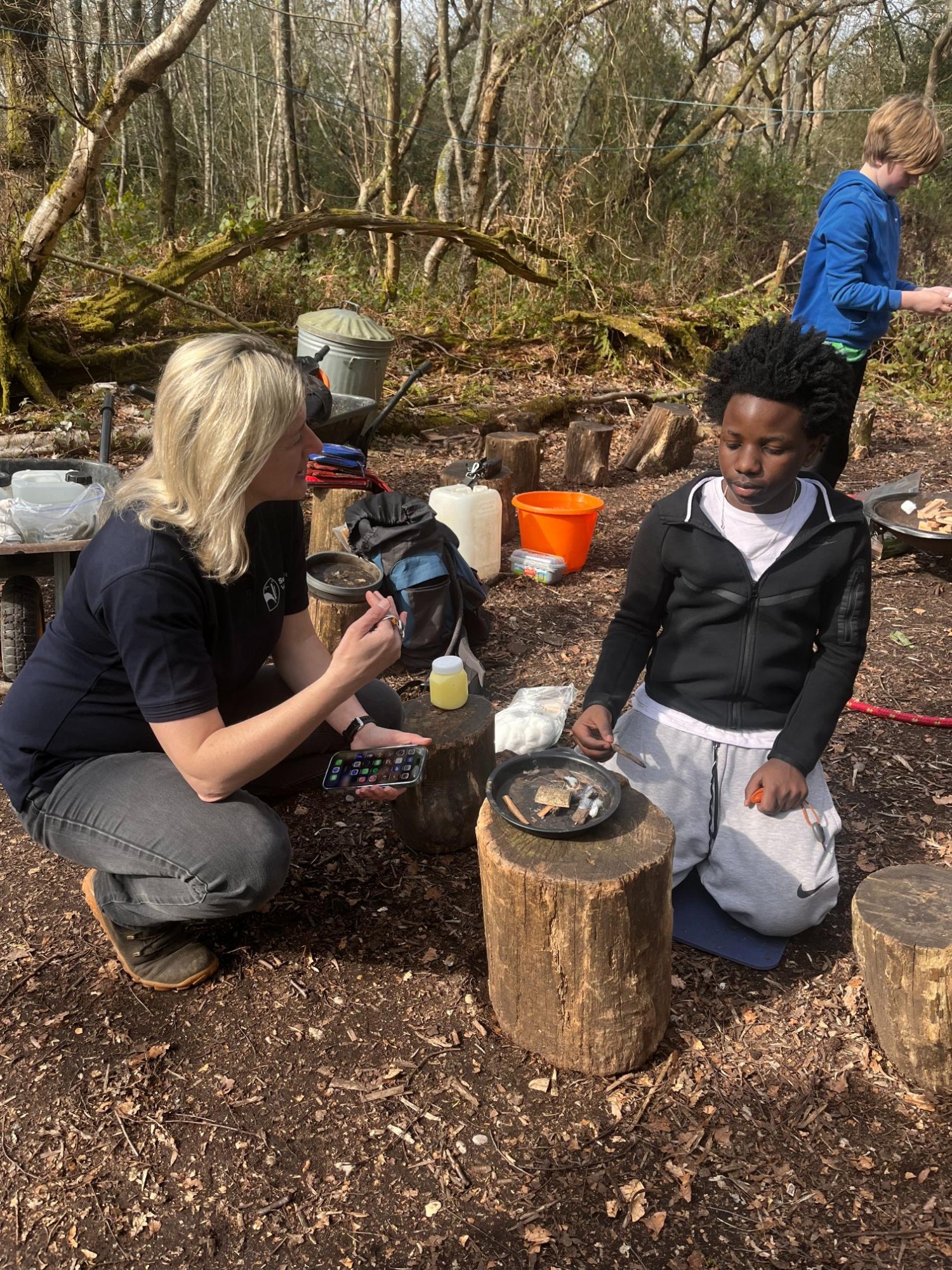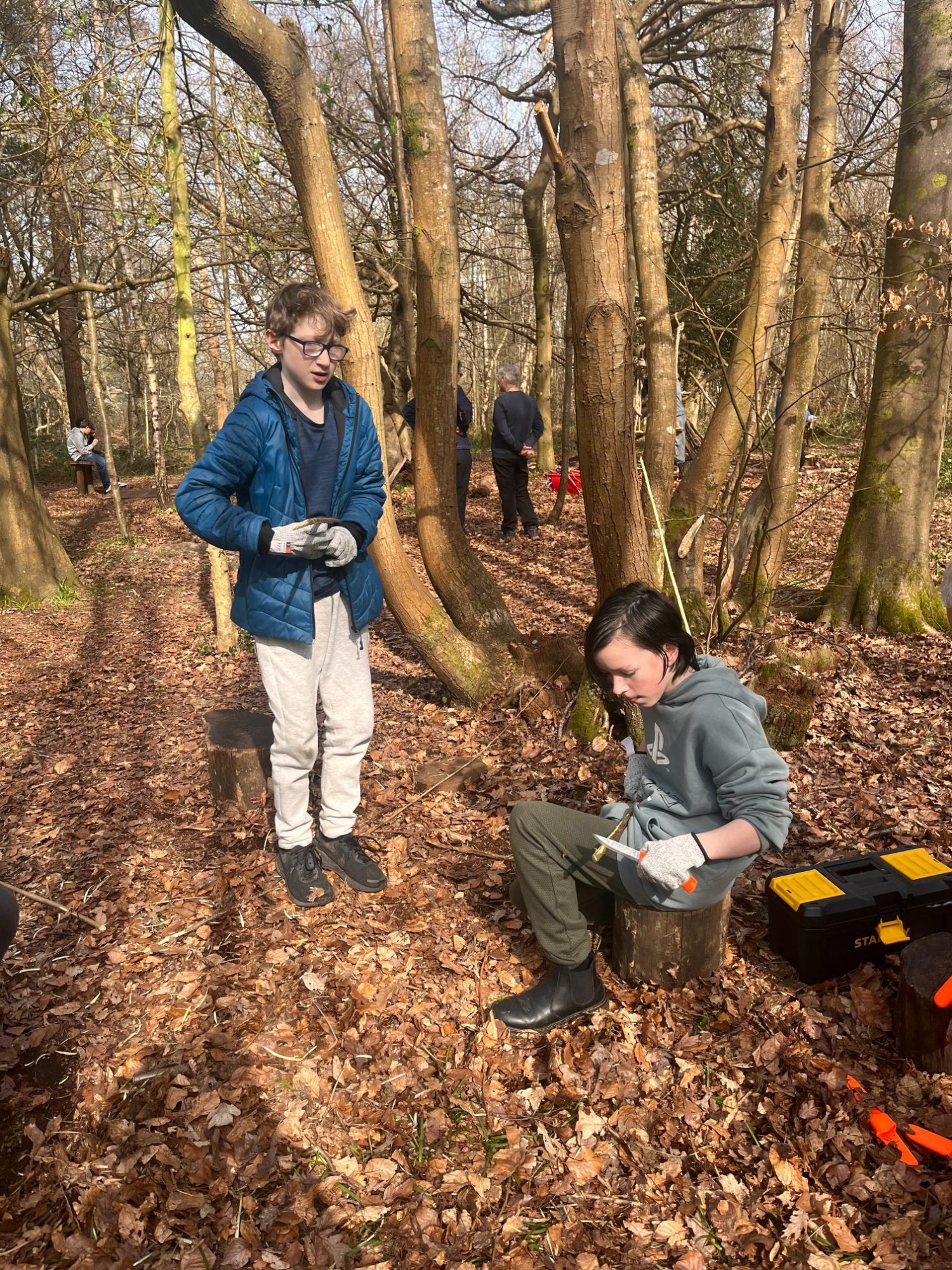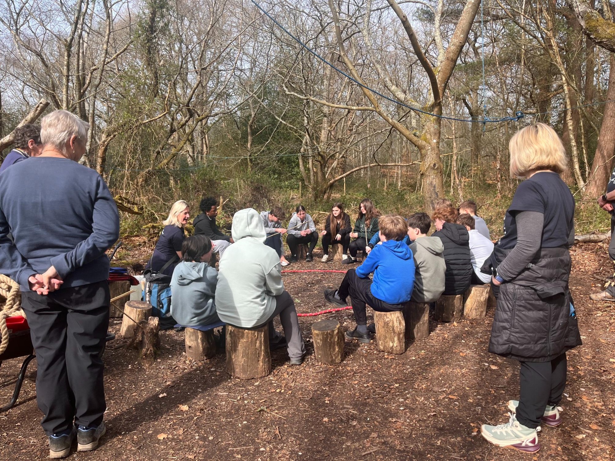 The group got hands‑on with all things outdoors, starting with swing‑building in the woods. Using ropes, branches, and a lot of teamwork (plus the odd "does this look safe?" moment), they created an impressive natural swing that was tested thoroughly - purely for scientific purposes, of course. Next up was whittling sticks.