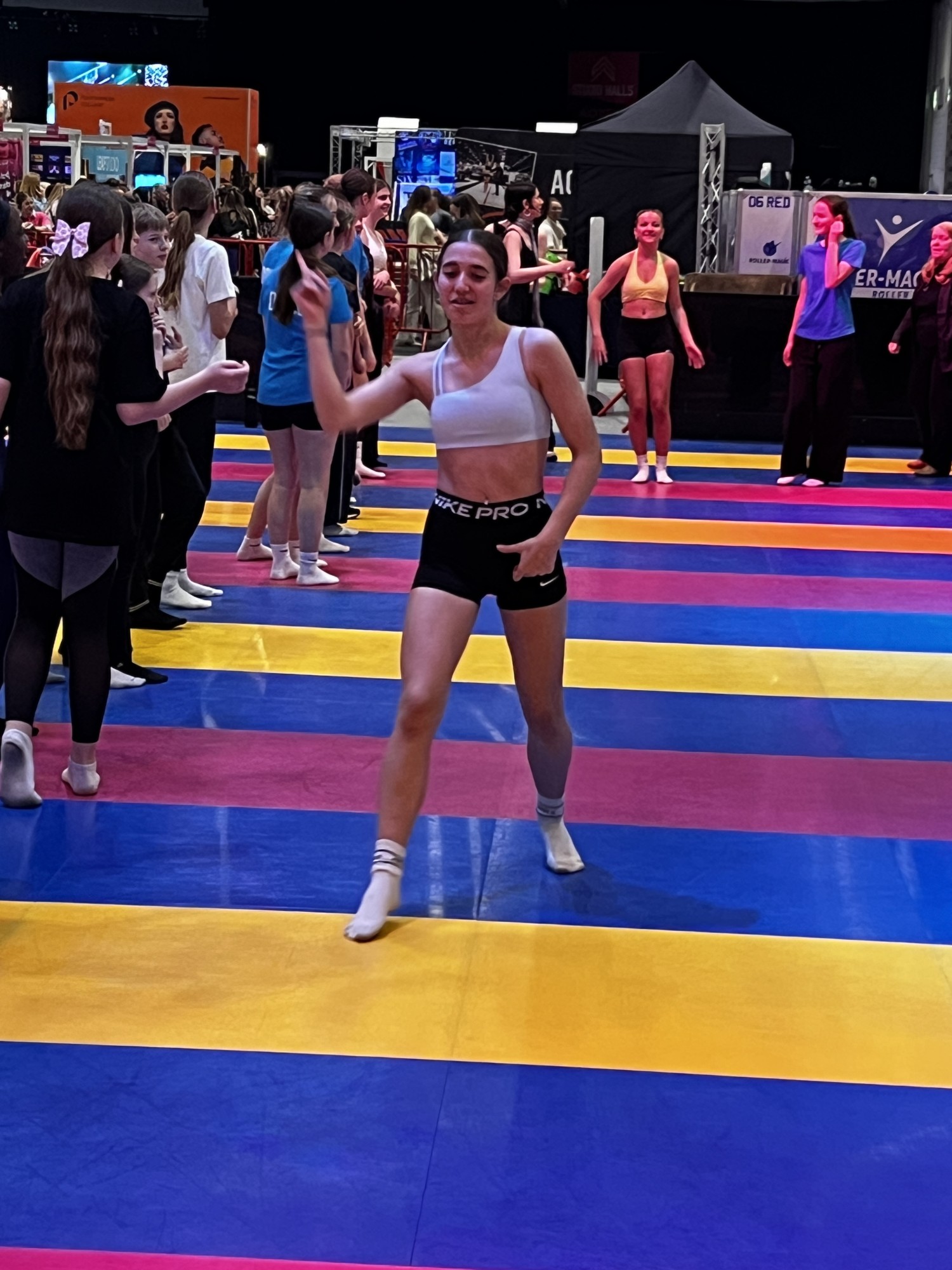 The group spent the day exploring the huge exhibition halls, soaking up the atmosphere and watching incredible performances across the stages. Every time they stopped, there was something new to see - commercial, contemporary, hip‑hop and more. It was basically dance paradise!